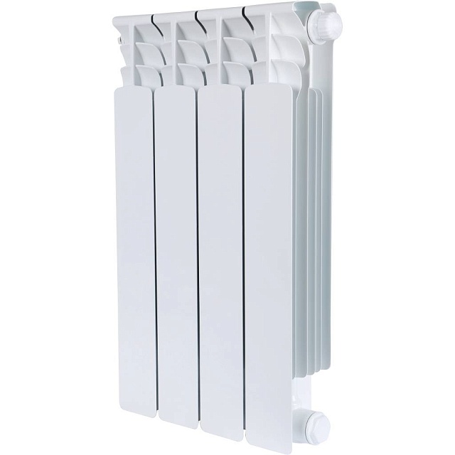 секционный, материал: биметаллические, подключение: нижнее правое, межосевое расстояние 50 см, число секций: 4, диаметр подключения: 1 дюйм, ширина одной секции 8 см, макс. рабочее давление 20 бар, литье под давлением, глянцевое покрытие, макс. рабочая температура 135°C